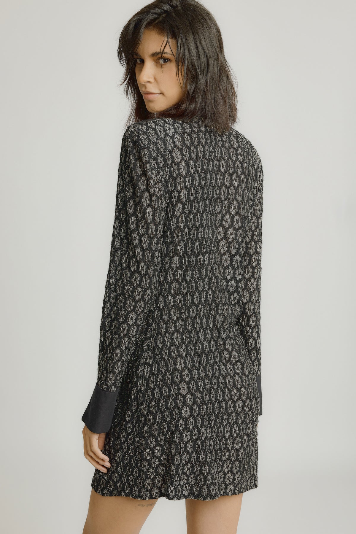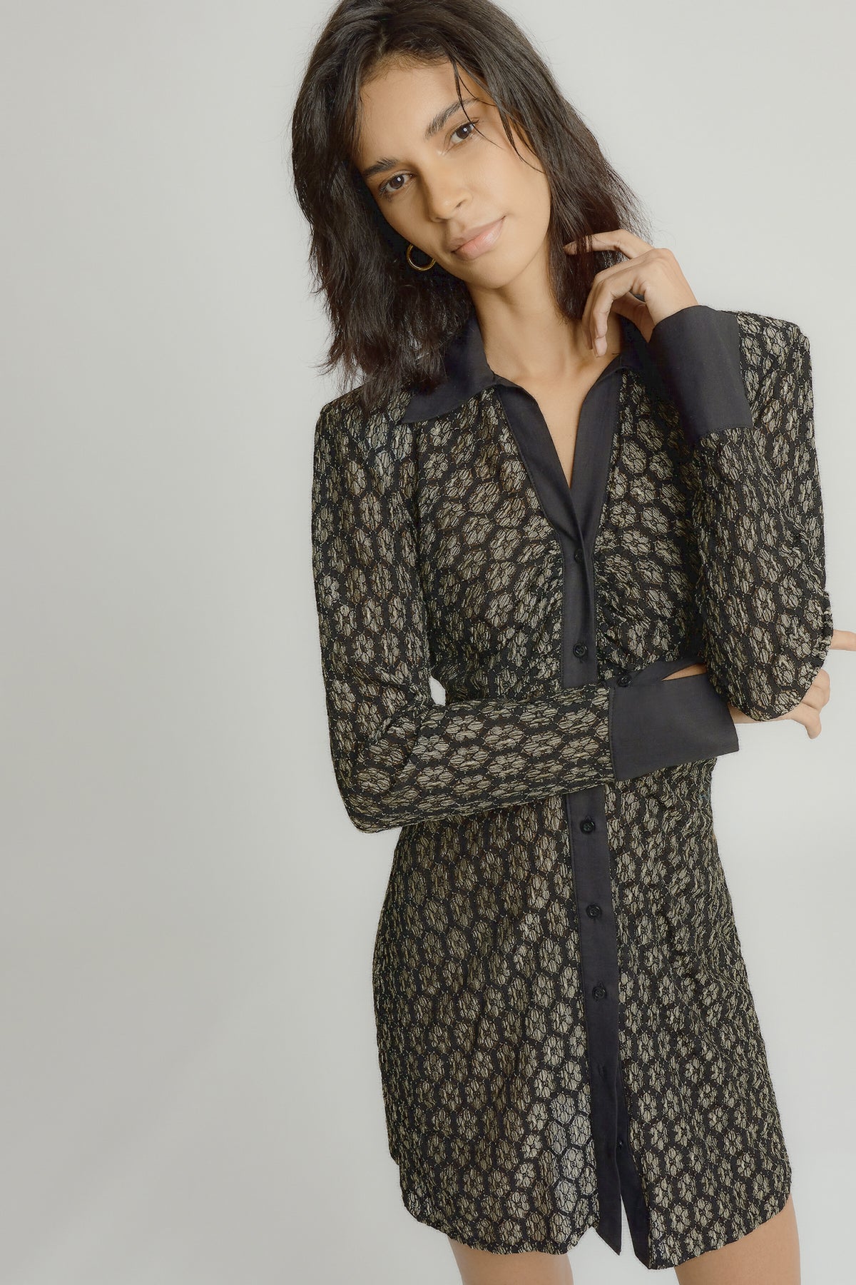 GIO elastic lace dress with shoulder pads is designed to fit perfectly for a nightout look.