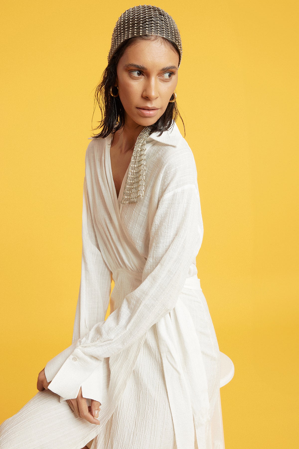 GITANE DRESS is back with its new edition. Wear the perfect combination of two fabrics for a night out or over a swimsuit. The generous front slit creates a minimal and feminine look.