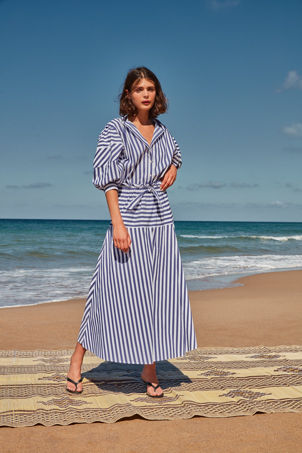 Hacimli balon kollu, düğmeli manşetli pamuklu poplin SAILOR GÖMLEK, çok yönlü çizgileri ve muhteşem siluetiyle en sofistike denizci görünümüne sahiptir. Uyumlu bir DENİZCİ ETEK ile takım halinde giyin